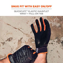 The ProFlex 815 QuickCuff Mechanics Gloves are built for versatile hand protection on a variety of jobs. A synthetic leather palm and reinforced thumb saddle provide enhanced grip and feel when handling materials. These comfortable utility work gloves are made of a flexible and breathable poly mesh for cool, no-bulk wear. A QuickCuff elastic gauntlet wrist means a snug fit, while the pull-on tab makes for easy on and off.